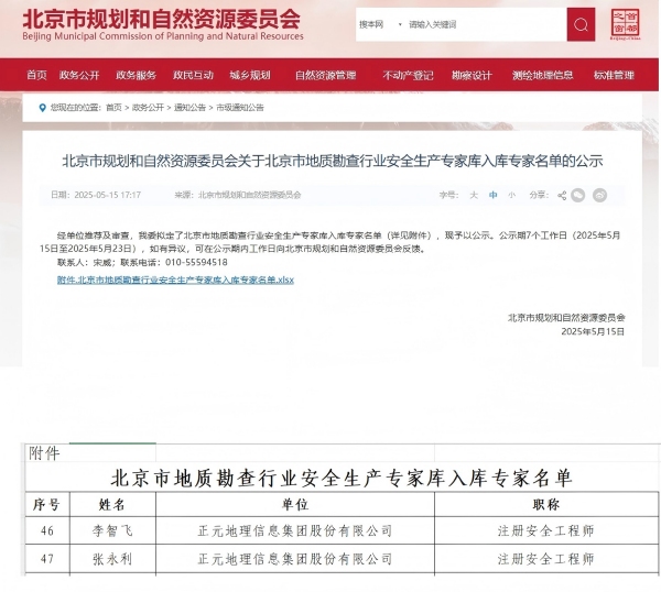 近日,北京市规划和自然资源委员会公示了2025年度地质勘查行业安全生产专家库入库专家名单,公司安全环保部张永利、李智飞凭借扎实的专业能力和丰富的行业经验成功入选。