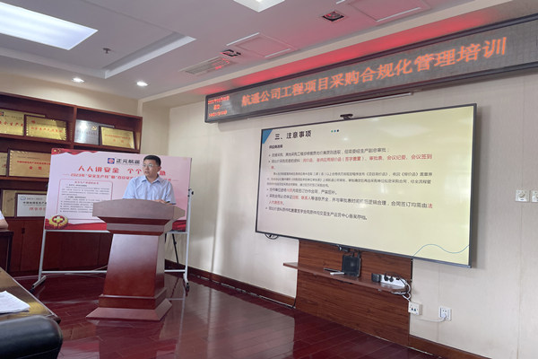 为规范工程项目采购管理,有效保障项目常规化运行,6月5日下午,航遥公司在济南组织了工程项目采购合规化管理培训。